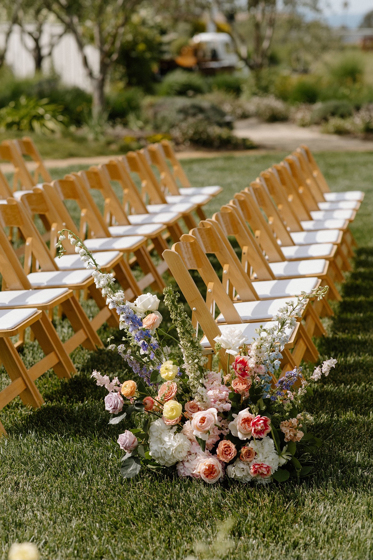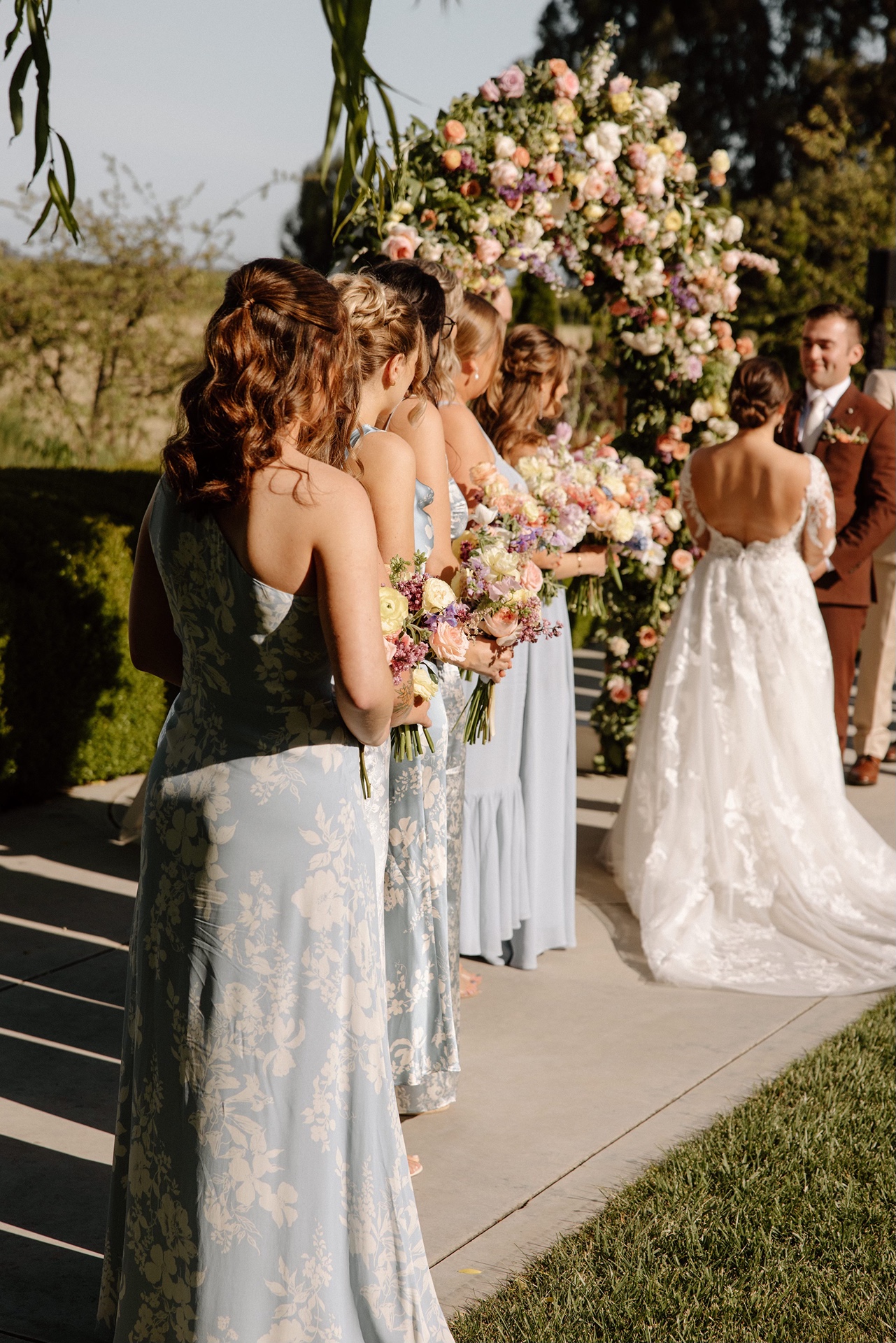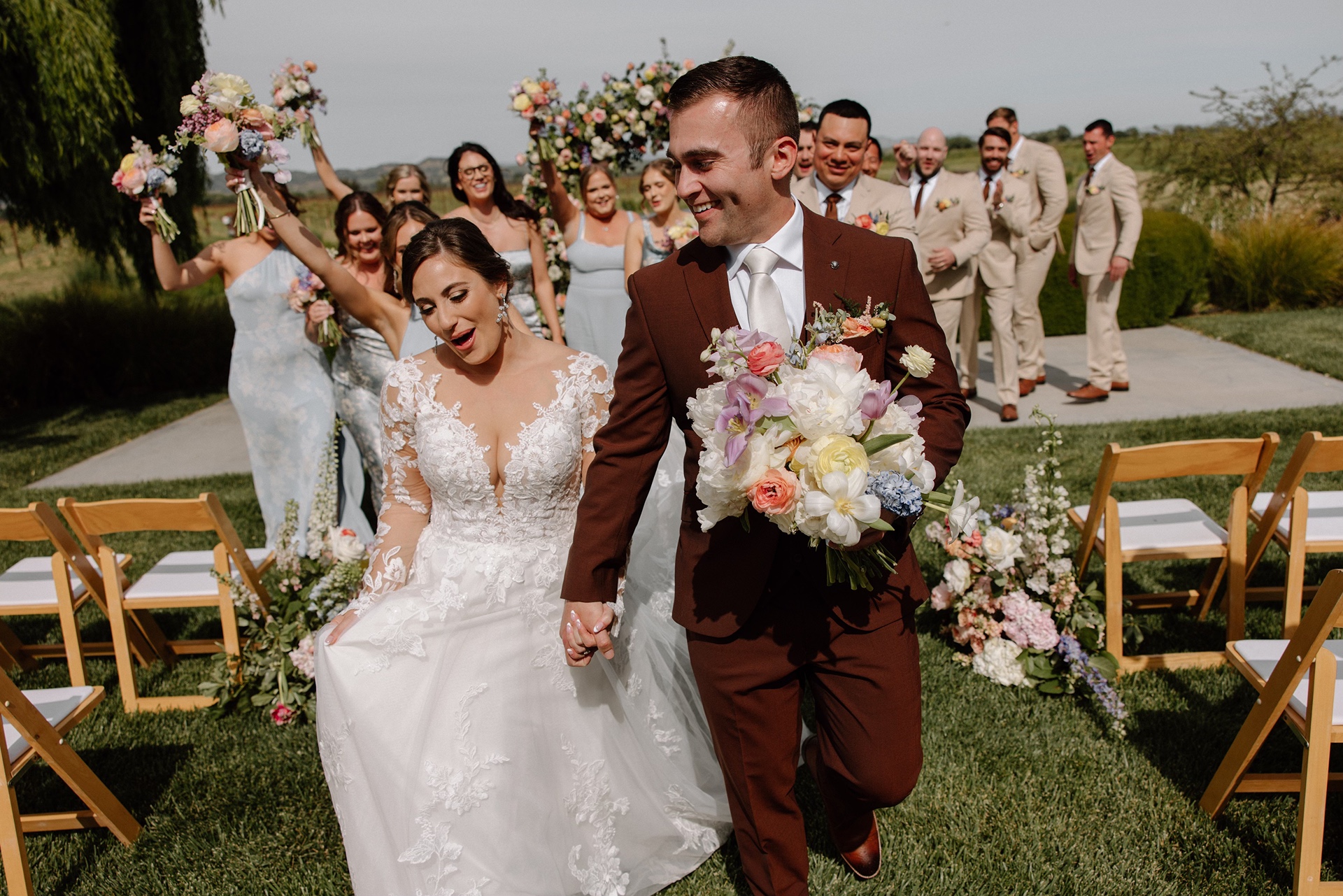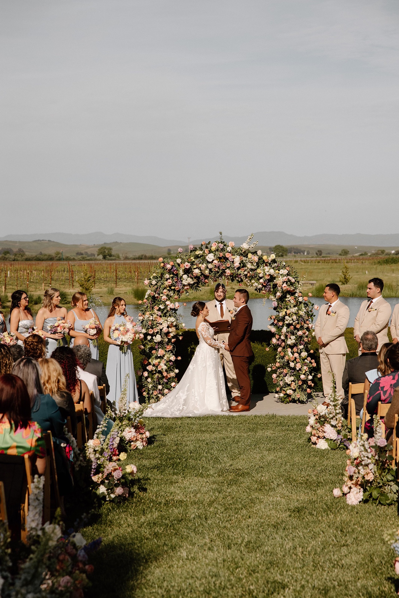 Set against the rolling landscape of Sonoma, Carly and Devin exchanged vows outdoors in a ceremony that felt intimate, heartfelt, and effortlessly romantic. Because late April marks the very beginning of vineyard season, the vines themselves were still waking up. It opened the door for a design approach that brought the garden to life through florals.