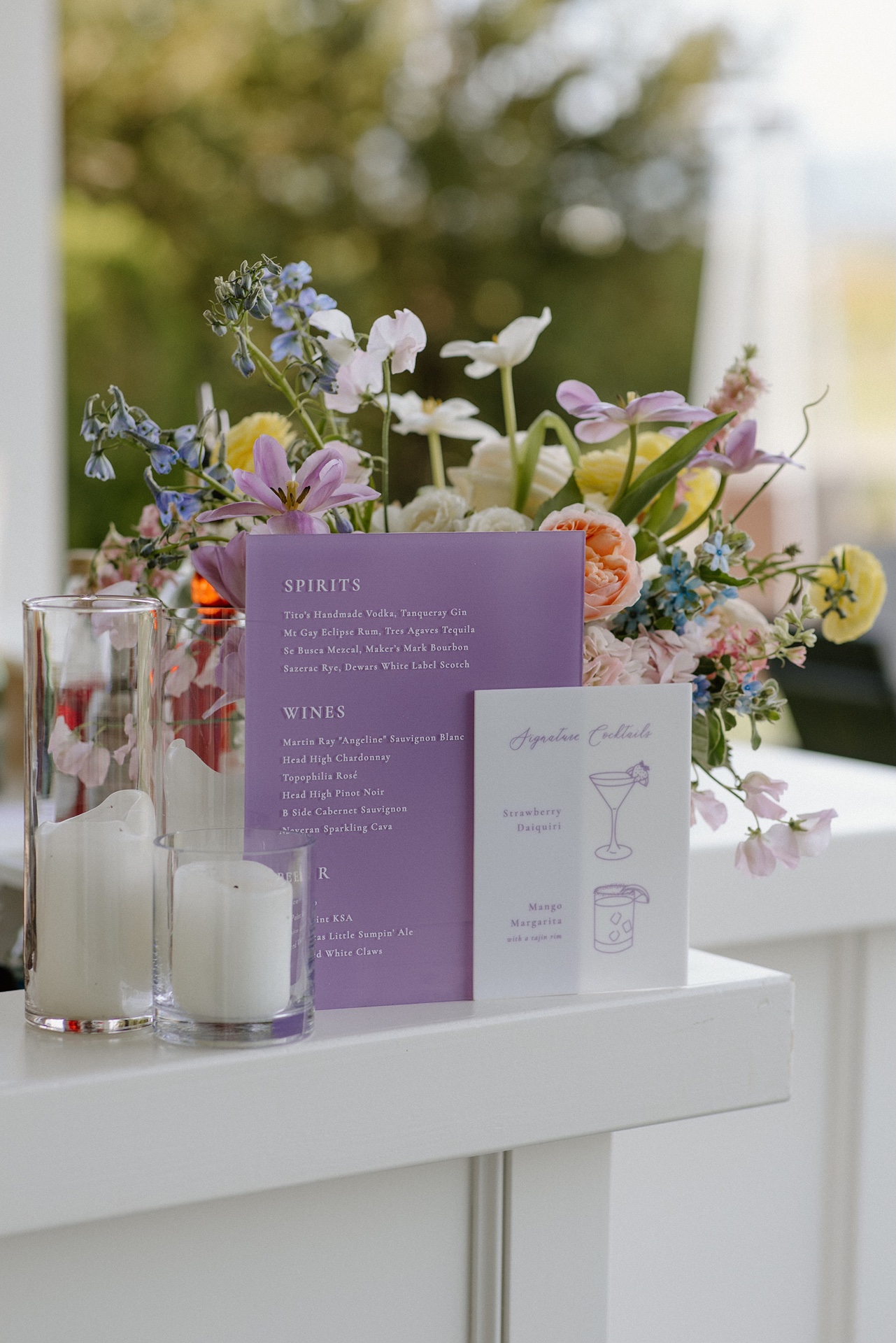 Food and family played a central role throughout the design. The seating chart doubled as guest favors, with each guest receiving a custom spice blend created by Carly using a recipe passed down from her mom. It was a meaningful way to share a piece of family history while giving guests something personal to take home.
