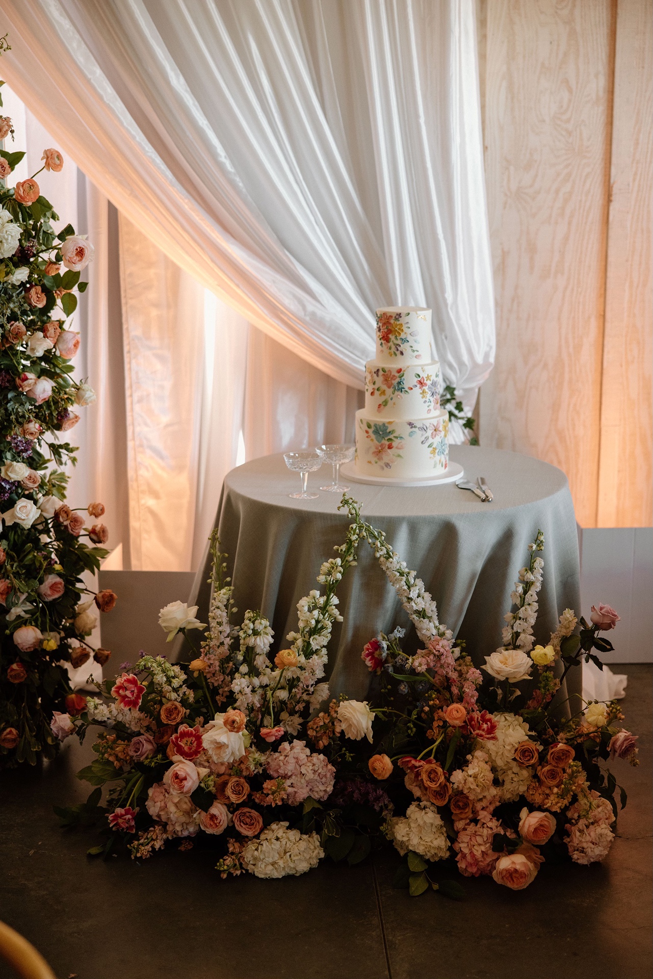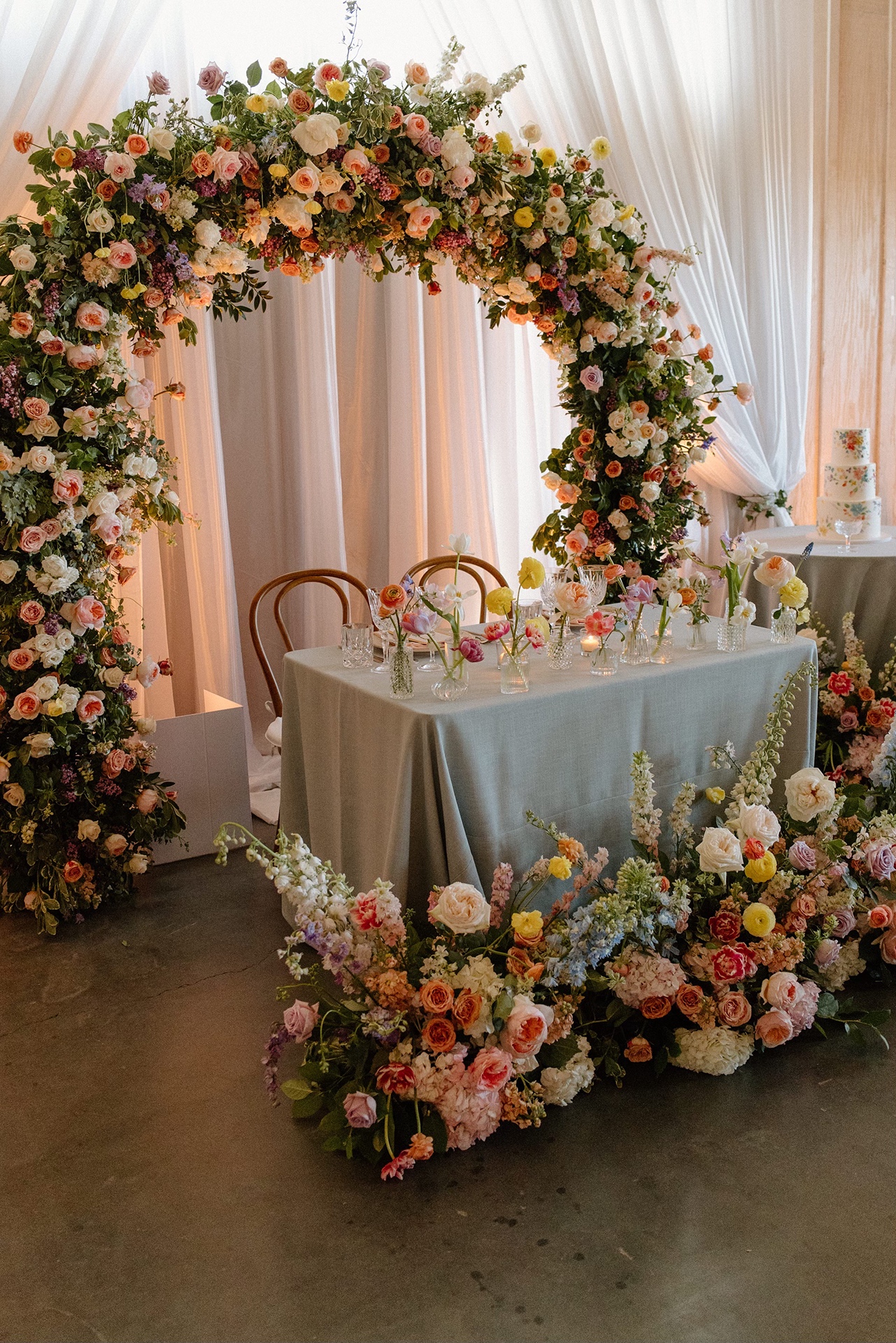 One of Carly’s favorite design moments was the cake. Instead of fresh florals, it featured hand-piped pastel florals, making it a true statement piece that felt whimsical, artistic, and completely unique.