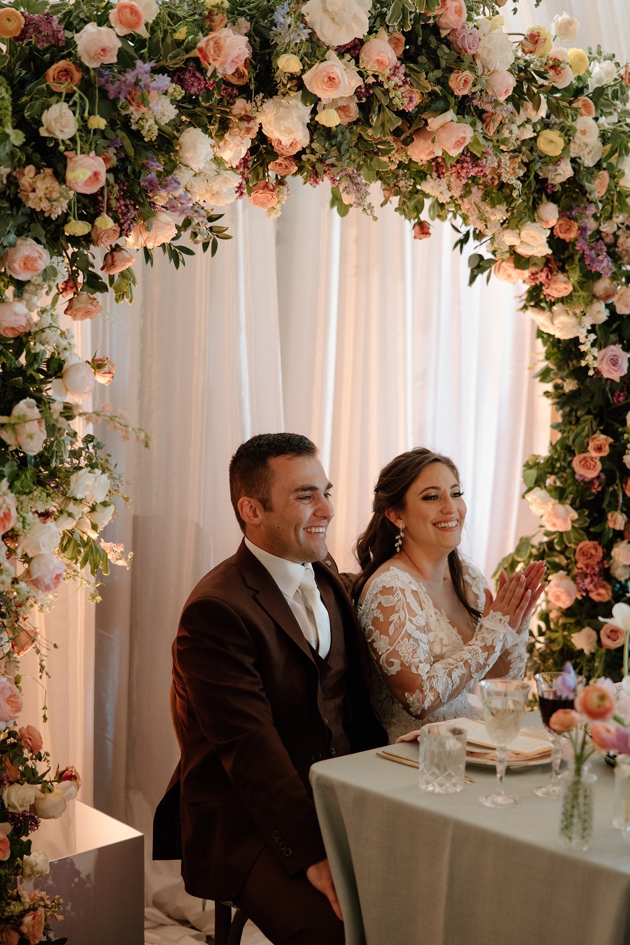 When it came time to plan the reception design, Carly leaned fully into a spring garden party aesthetic. Soft pastel florals, layered textures, and a fresh, airy palette created a look that felt both elevated and joyful.